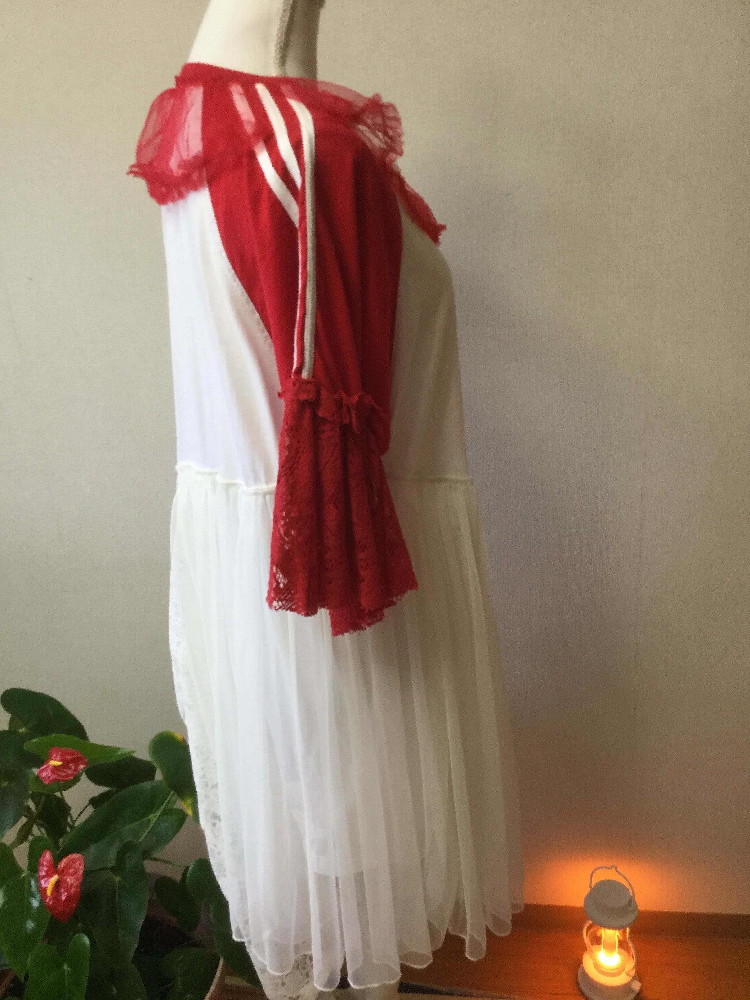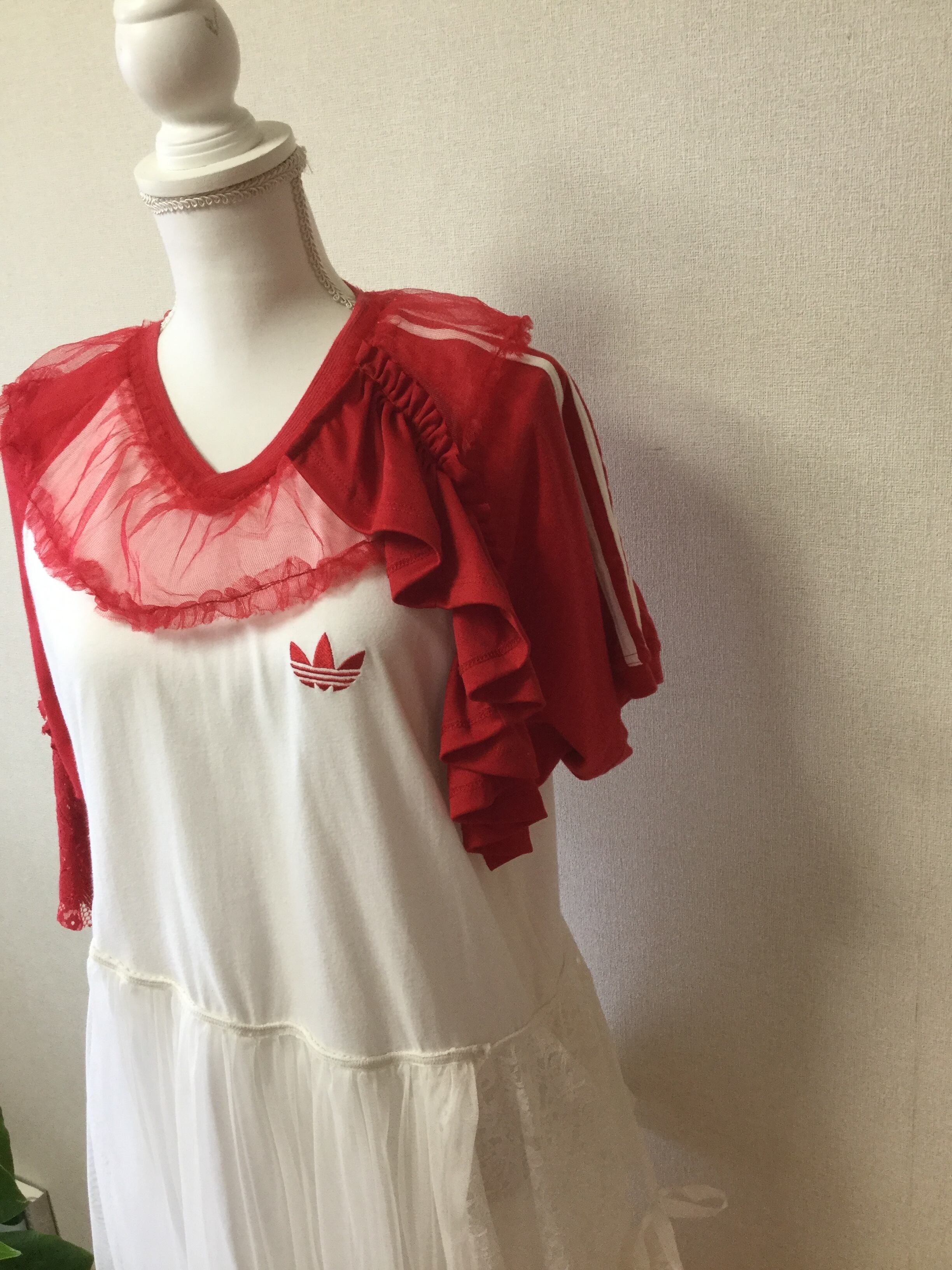 USAサイズ大きめのTシャツに裾部分にかけ異素材レースでワンピースに