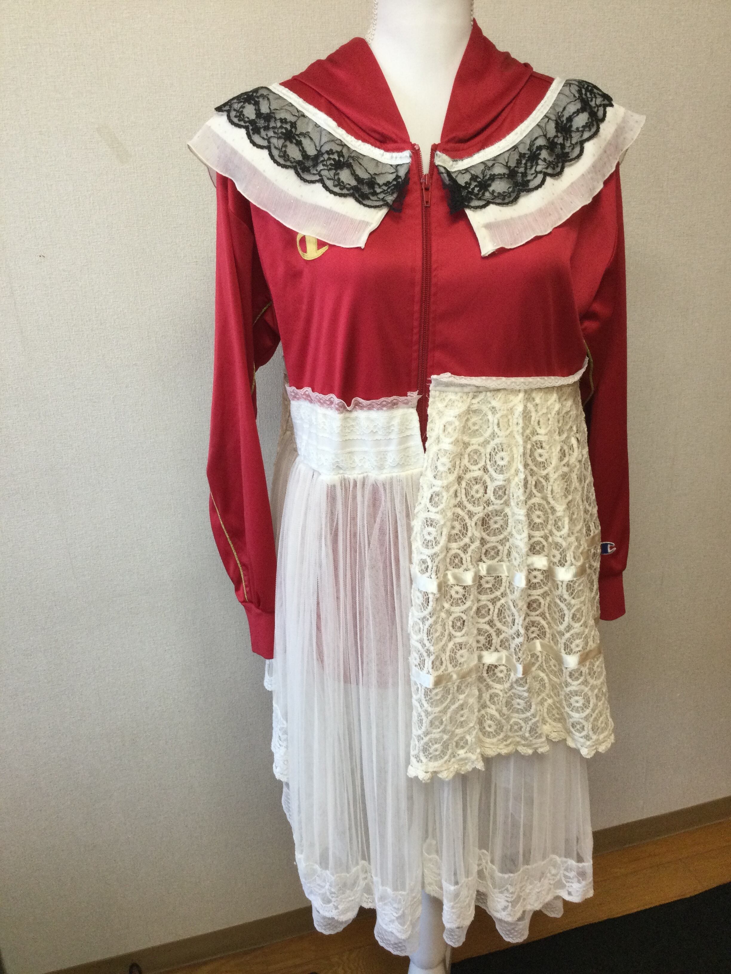 古着リメイク レースのクラッシックフーディ スポーツMIX