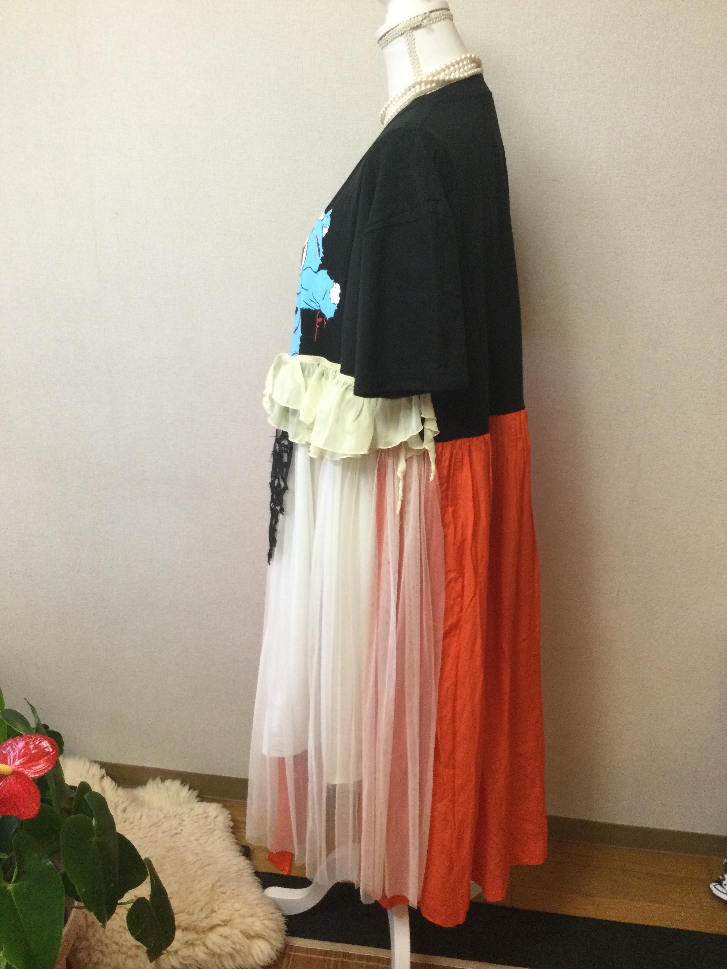 古着リメイク ゾンビ熊ちゃんのロングワンピース