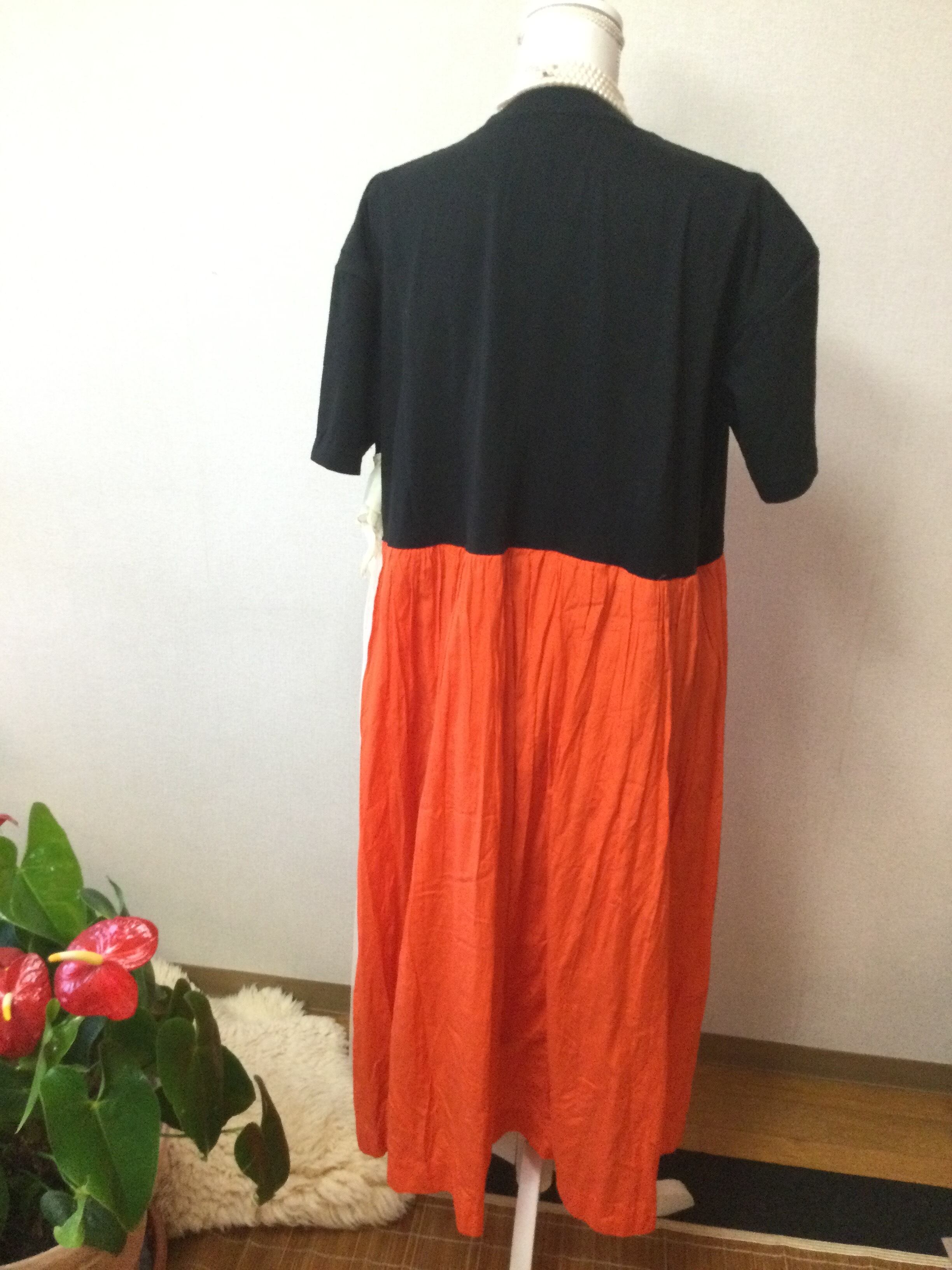 綺麗なオレンジ色のスカートとユニークなクマちゃんで明るい印象になります。